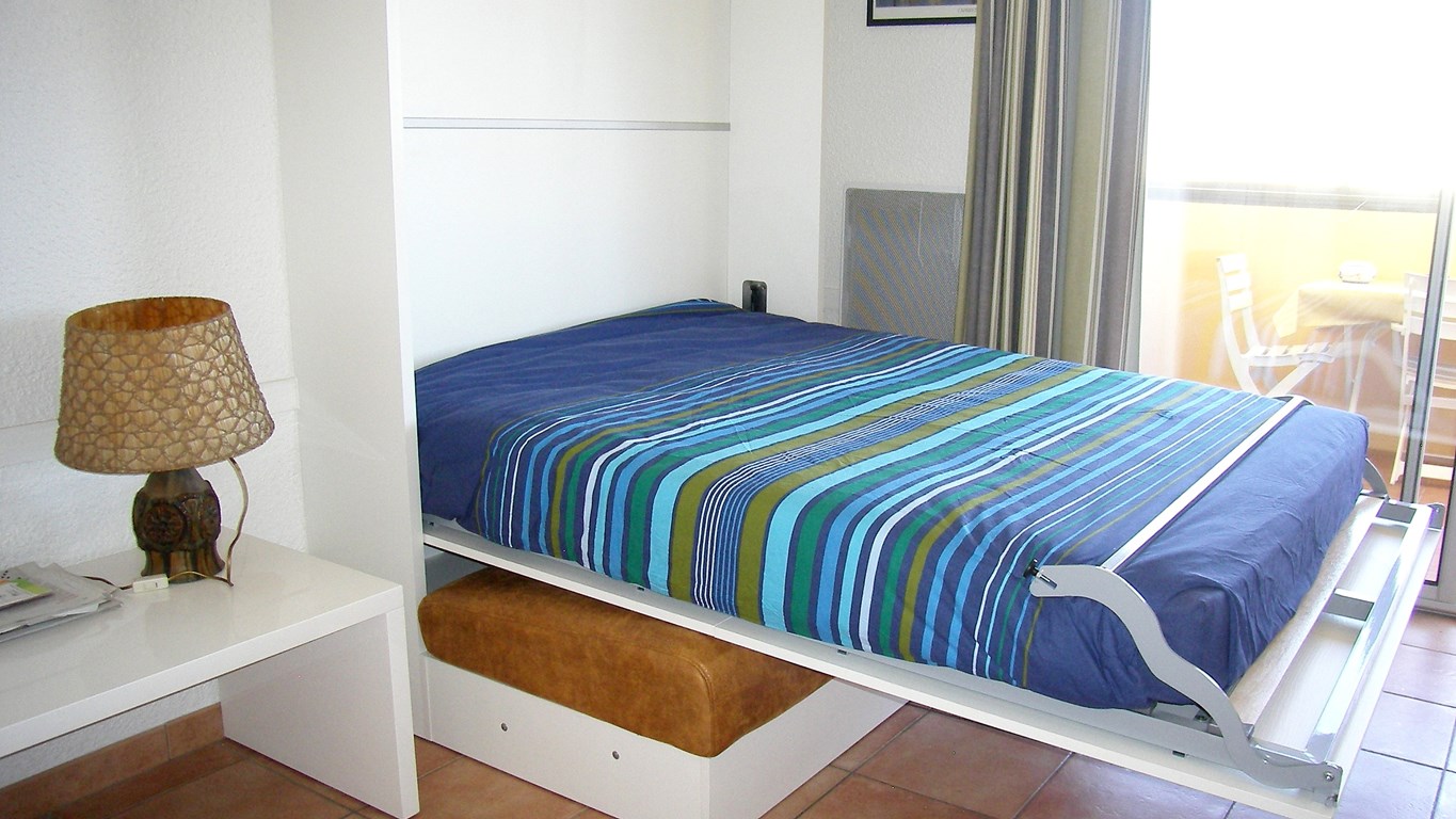 Deux pièces composé d'un séjour avec cuisinette bien équipée, donnant sur une terrasse exposée a l'ouest avec vue sur la mer. Table et chaises de jardin. Une chambre donnant sur une salle d'eau fer...