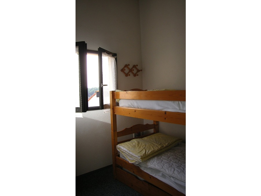 Trois pièces en duplex : 2ème étage, entrée avec wc indépendants et placard, salle de bains, cuisinette et grand salon avec canapé convertible ouvrant sur la terrasse orientée à l’ouest. Au premier, une chambre enfants avec lits superposés à tiroir (3 couchages), une chambre avec lit double. Accès gratuit à la piscine, aux tennis et place de stationnement privée. Le linge de maison et ménage ne sont pas inclus dans la réservation mais peut vous être proposé à la location au besoin. (nous consulter)