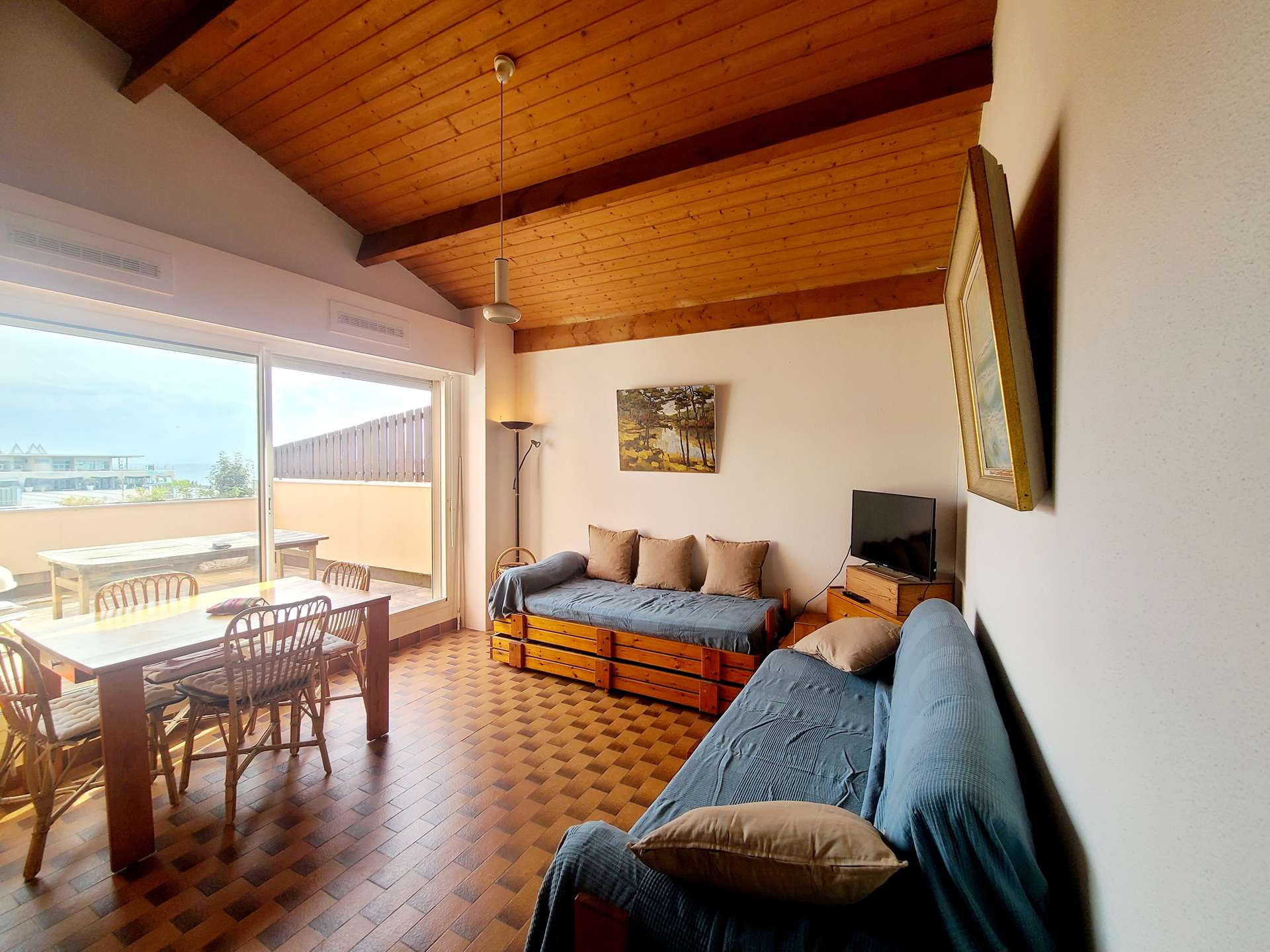 Des vacances les pieds dans le sable. Vous bénéficierez d’un accès direct au chenal du port de Capbreton et à la plage de Notre Dame. La terrasse de 14m² est un vrai plus: à vous les sunsets, les déjeuner à l’abri du soleil grâce au store, les moments de lecture et de détente en admirant le passage des bateaux... L'appartement est composé d’une grande pièce de vie avec belle hauteur sous plafond, d'une cuisine équipée avec tout le nécessaire, chaque pièce profite d'un accès direct à la terrasse. Côté nuit, les couchages sont organisés de la façon suivante: - dans le salon deux lits banquettes en 90 - dans la chambre 1 lit double en 160 L'appartement est prévu pour 4 personnes. La salle d'eau, séparée des WC, a été entièrement rénovée avec goût. Cet appartement familial vous apportera toute la quiétude pour profiter au mieux de votre séjour. Il est loué avec une place de parking souterraine pour votre confort durant les périodes de forte affluence. Le linge de maison (draps et serviettes) n'est pas inclus dans la réservation mais peut vous être proposé à la location au besoin. (tarif : nous consulter) Ménage de fin de séjour 60€ En période de froid un supplément vous sera demandé pour la participation au chauffage