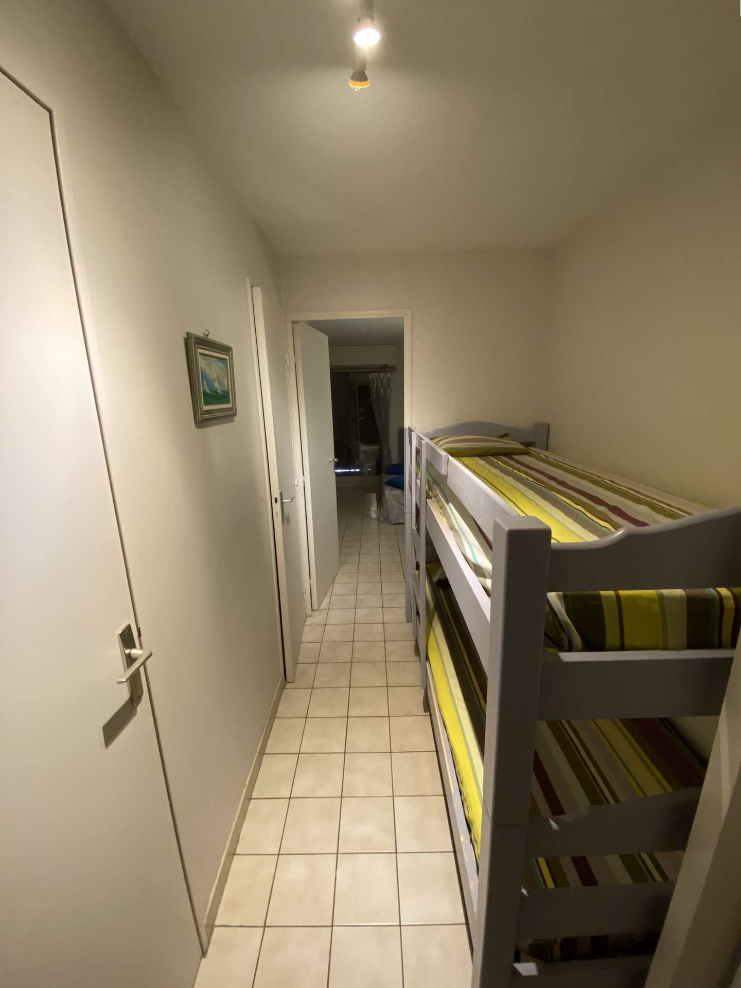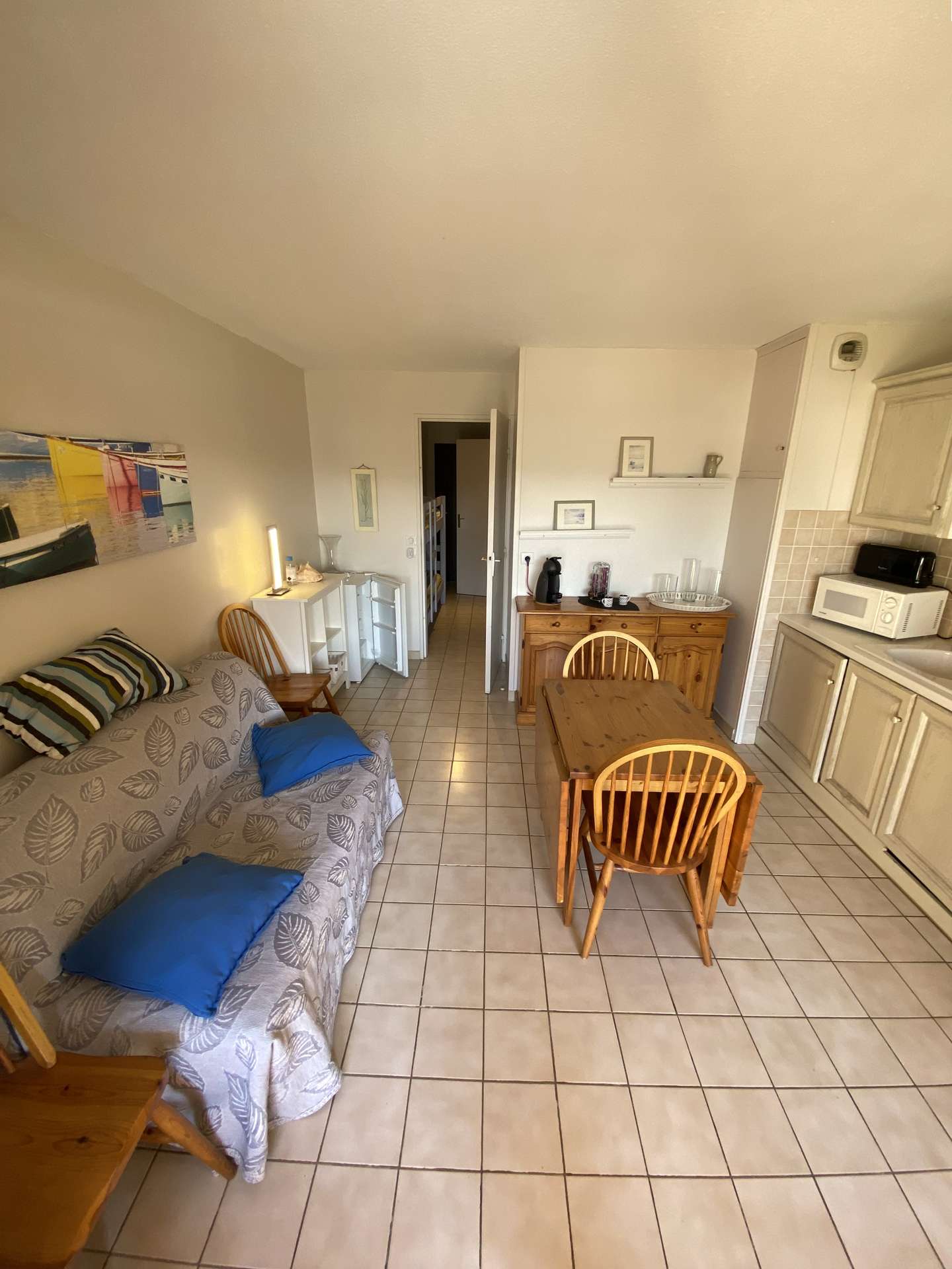 Ce T2 rafraîchi à proximité des plages vous offre: - une entrée avec deux lits superposés - une cuisine ouverte sur le séjour entièrement équipée (lave-linge, lave-vaisselle, four, plaques de cuissons ... ), tout le nécessaire pour votre petit déjeuner et pour la préparation de vos repas - un séjour, aménagé d'un canapé convertible et équipé d'une télévision, vous permettant d'accéder directement à la terrasse et partager vos repas autour d'une belle tablée - une salle de bains avec baignoire - une chambre séparée, cosy et équipée d'un lit double (140x200) Les atouts de cet appartement sont nombreux: proximité avec les plages, place de parking privative, terrasse exposée sud, appartement cosy et fonctionnel décoré avec soin. Ménage et linge de lit et de toilettes en option
