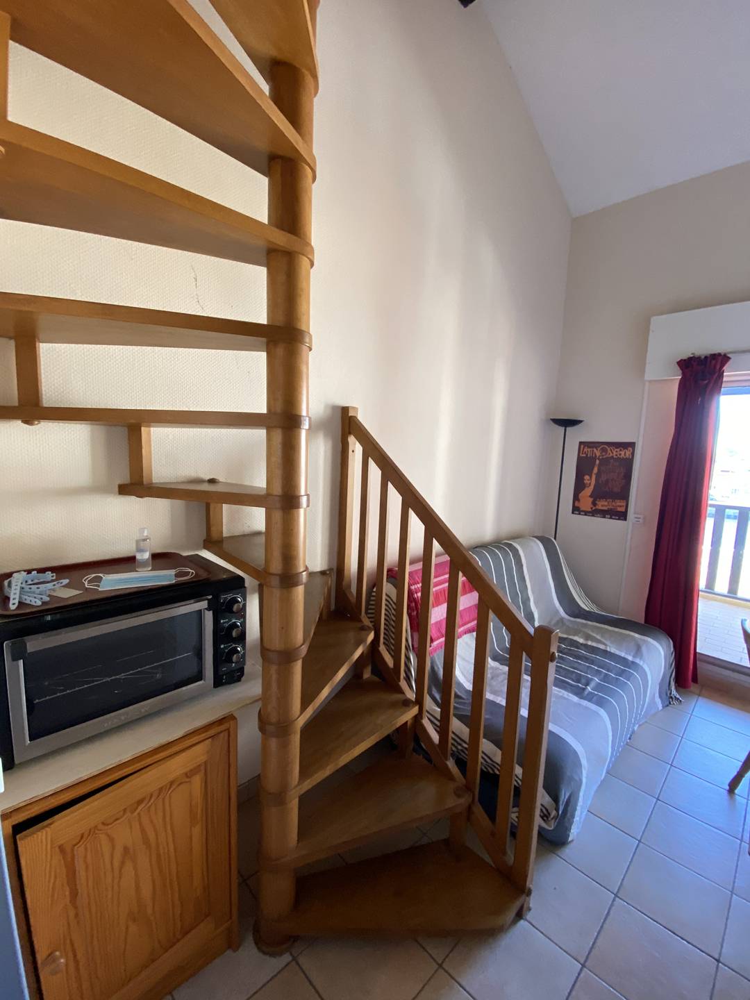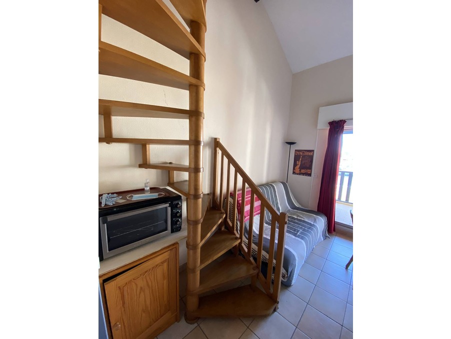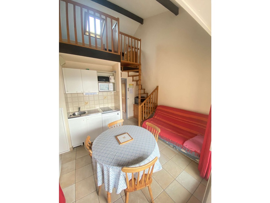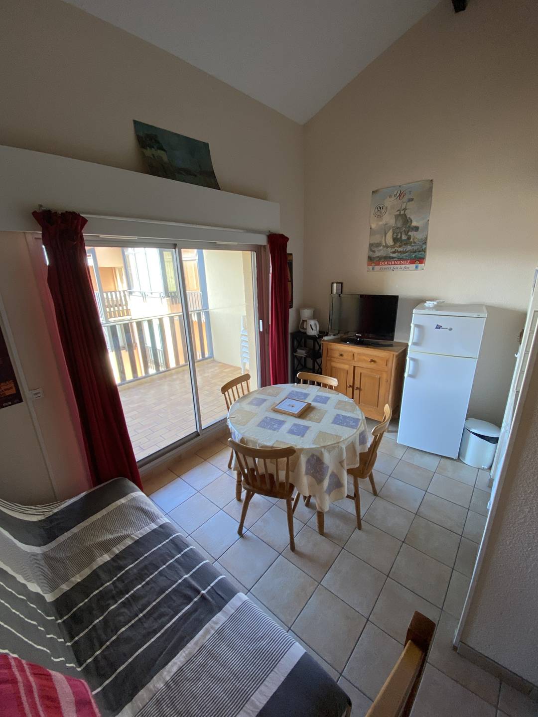 Deux pièces composé d'un séjour avec cuisinette bien équipée, donnant sur une terrasse exposée a l'ouest avec vue sur la mer. Table et chaises de jardin. Une chambre donnant sur une salle d'eau fer...
