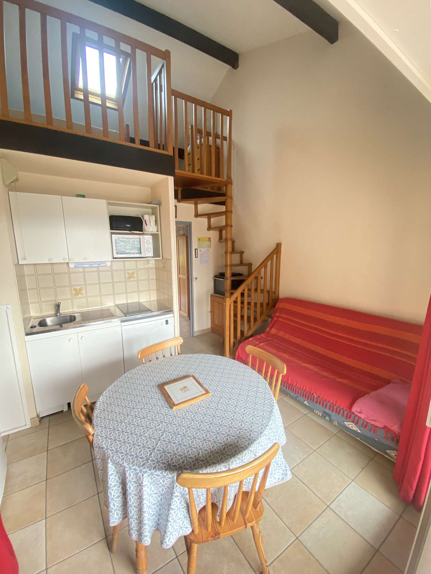 Deux pièces mezzanine, 2 ème étage, entrée avec placard, chambre avec lit double, salle d'eau, wc, cuisinette et salon ( canapé convertible ) avec mezzanine ouvrant sur une terrasse orientée sud-ouest. Jolie vue sur le port et le canal. Le linge de maison n'est pas inclus dans la réservation mais peut vous être proposé à la location au besoin. (tarif : nous consulter) Ménage de fin de séjour 60€ En période de froid un supplément vous sera demandé pour la participation au chauffage