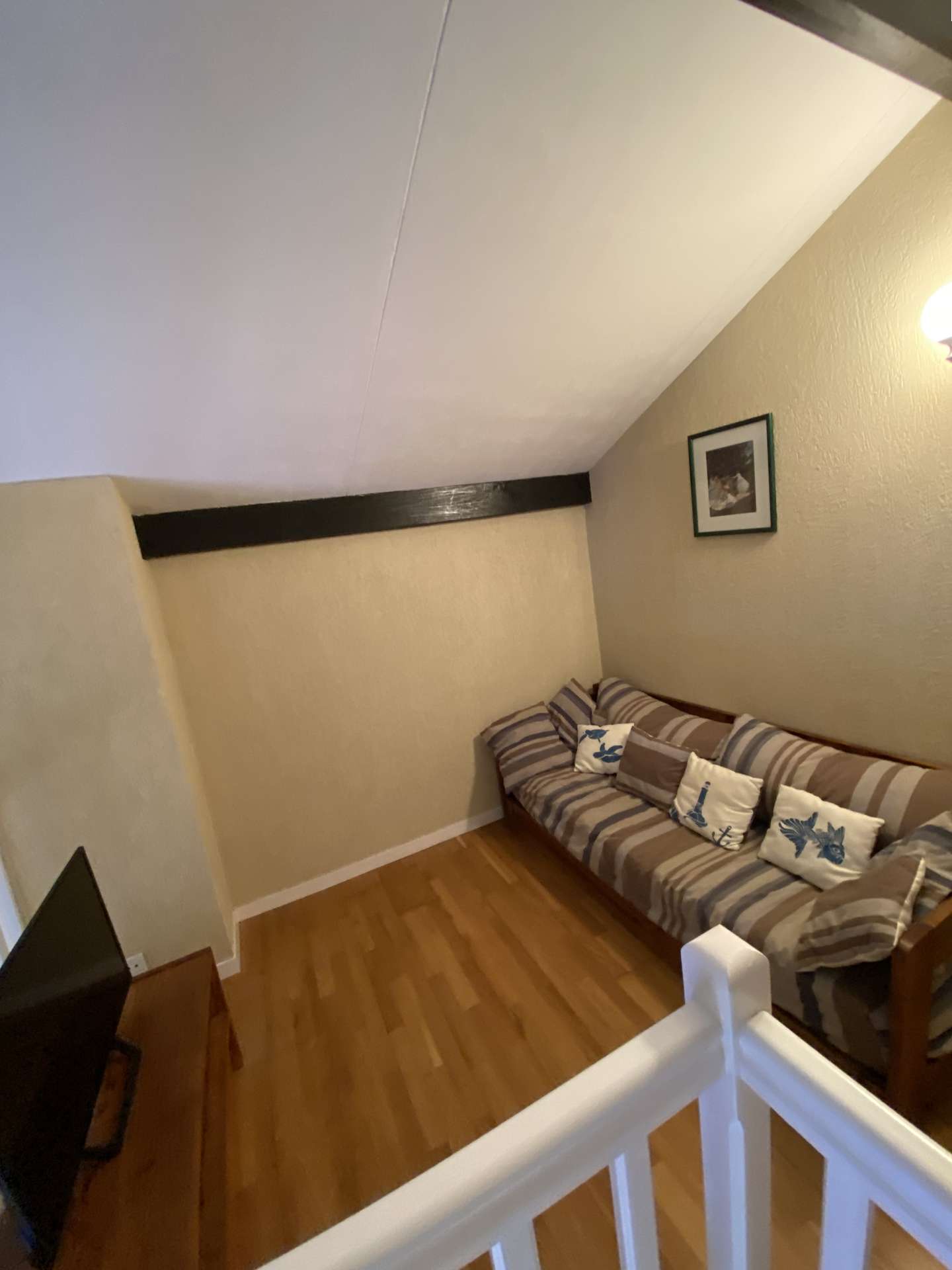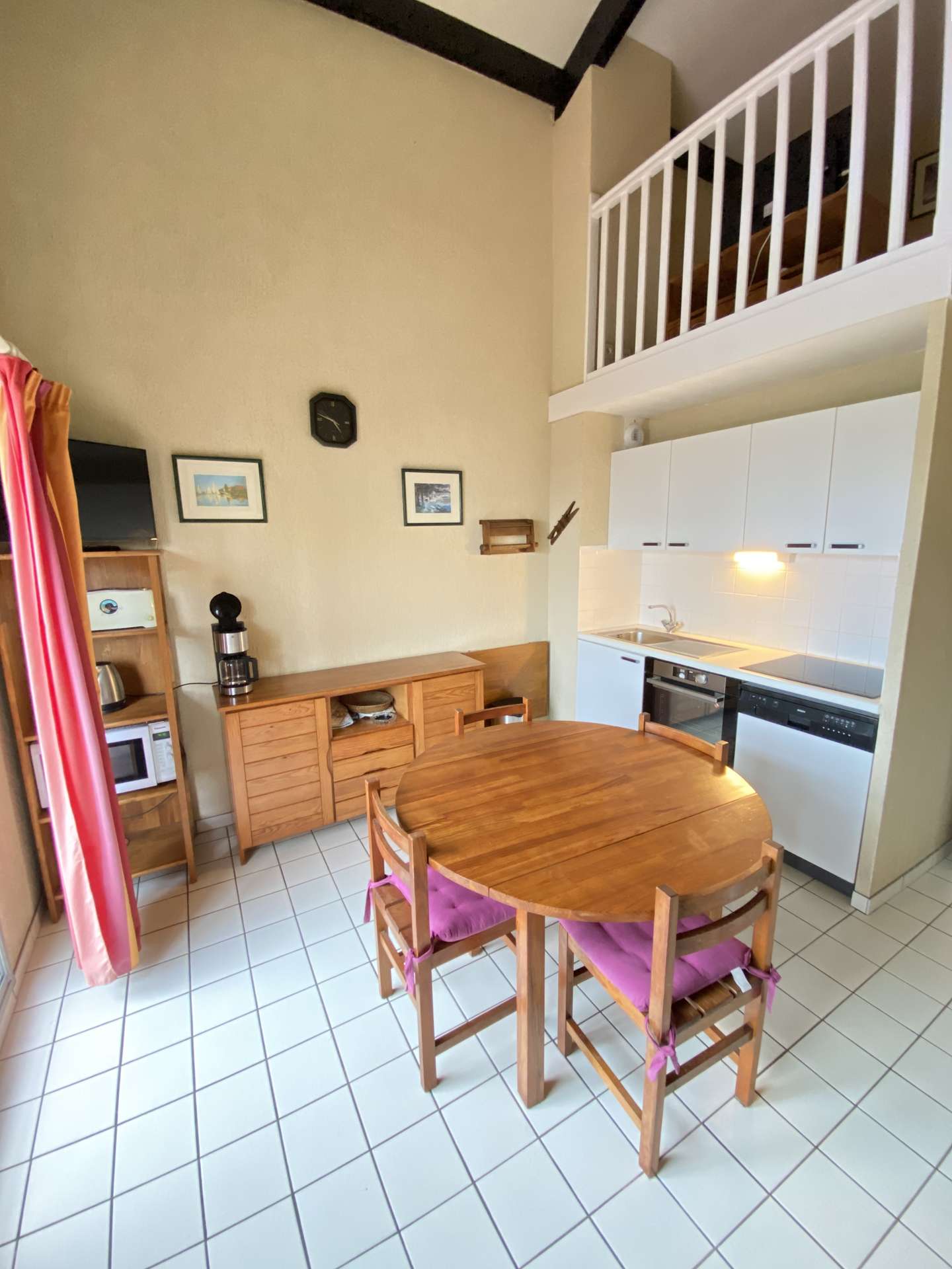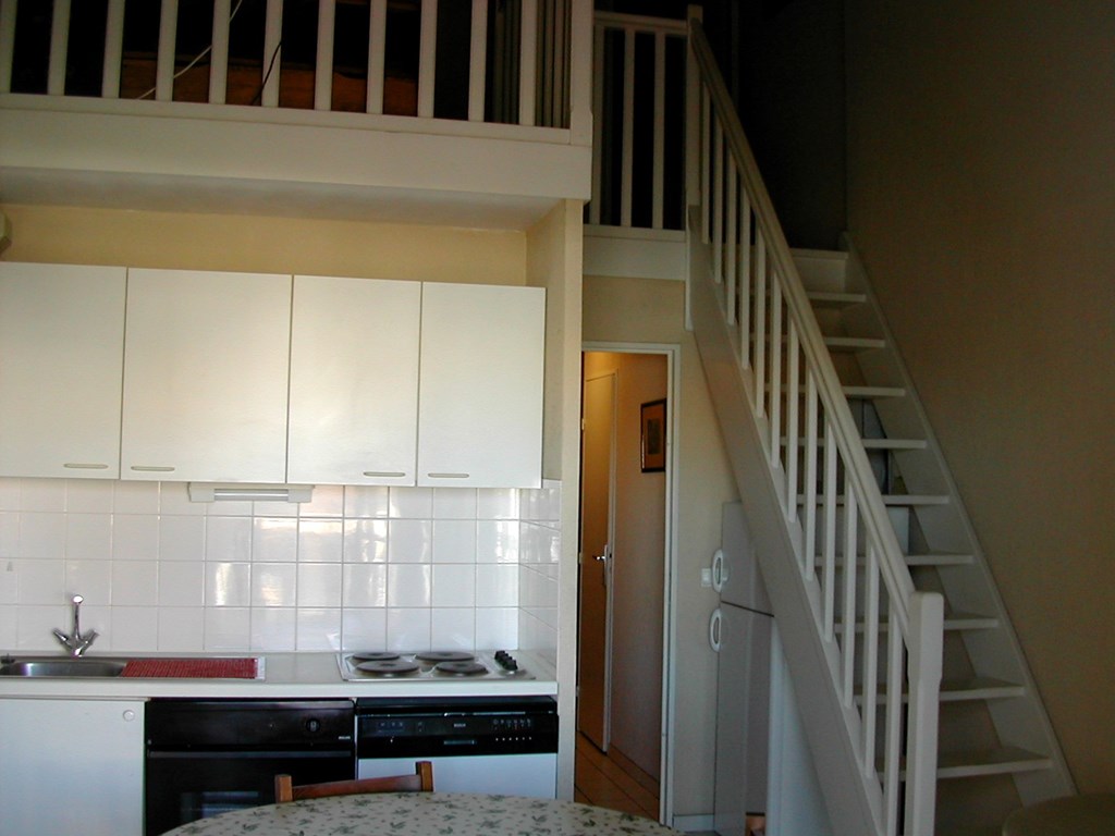 Au 2 ème étage, entrée avec placards, chambre enfants 3 lits dont lits superposés et lit simple , salle de bain, wc indépendants, séjour avec cuisinette aménagée ouvrant sur la terrasse exposée a l'ouest Petite mezzanine avec téléviseur et canapé convertible et chambre avec lit double et grands placards. Le linge de maison n'est pas inclus mais peut vous être proposé à la location au besoin. ( nous consulter) Ménage de fin de séjour 60€ En période de froid un supplément vous sera demandé pour la participation au chauffage