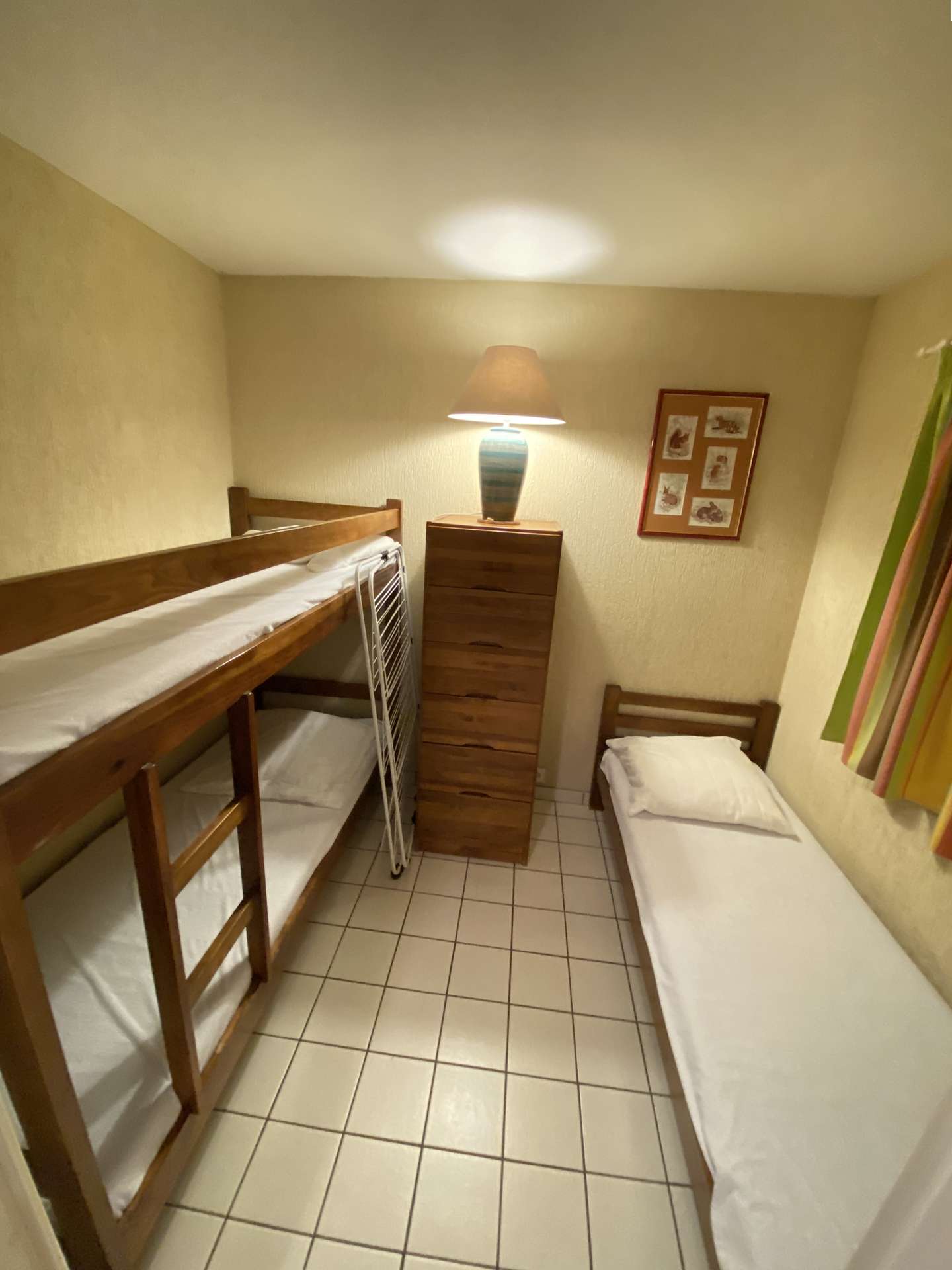 Cet appartement de type 3 en duplex est composé au rez de chaussée de l'espace nuit: deux chambres dont une aménagée de 2 lits simples et une belle chambre double (lit en 140x200) avec accès à extérie...