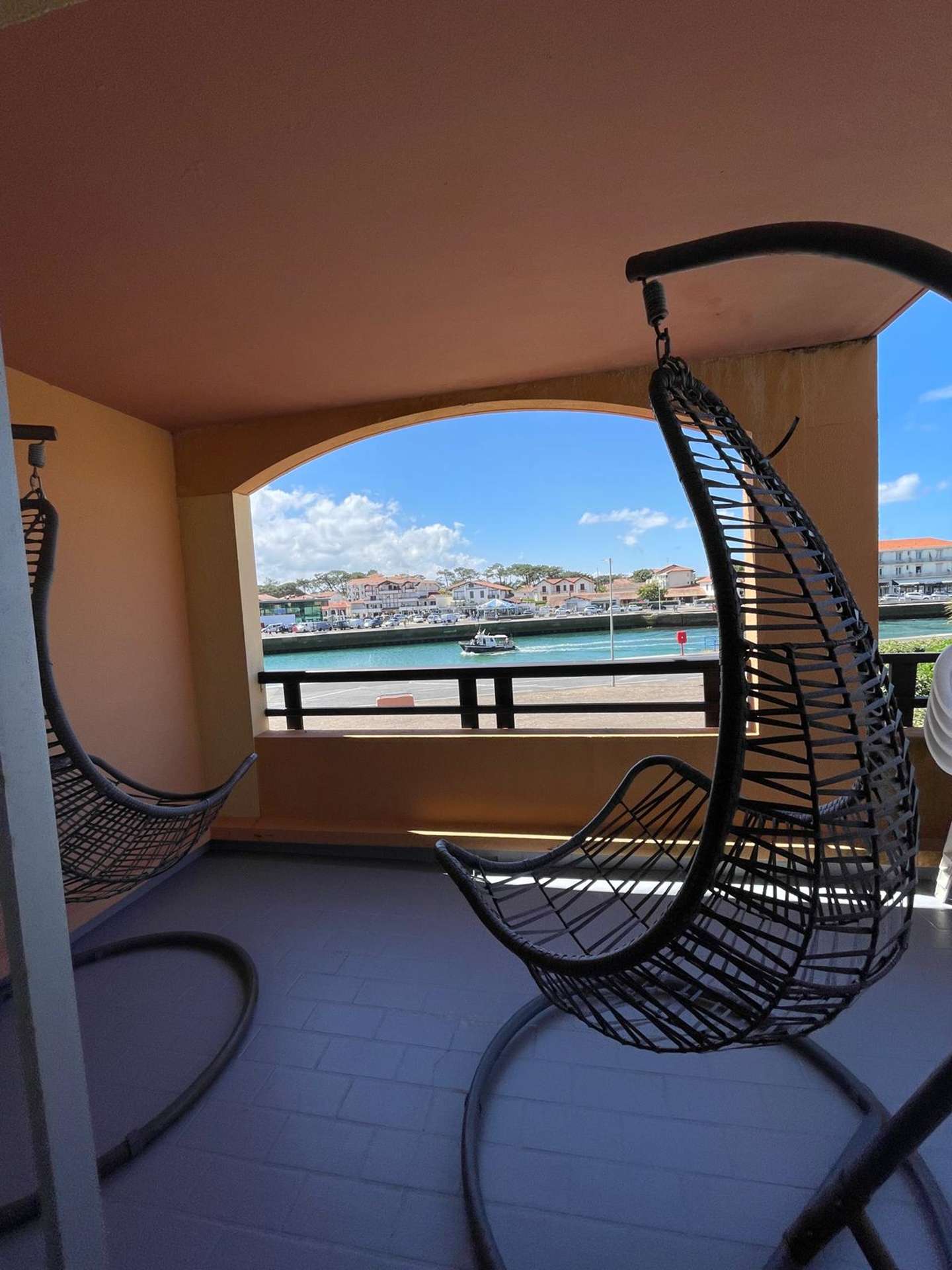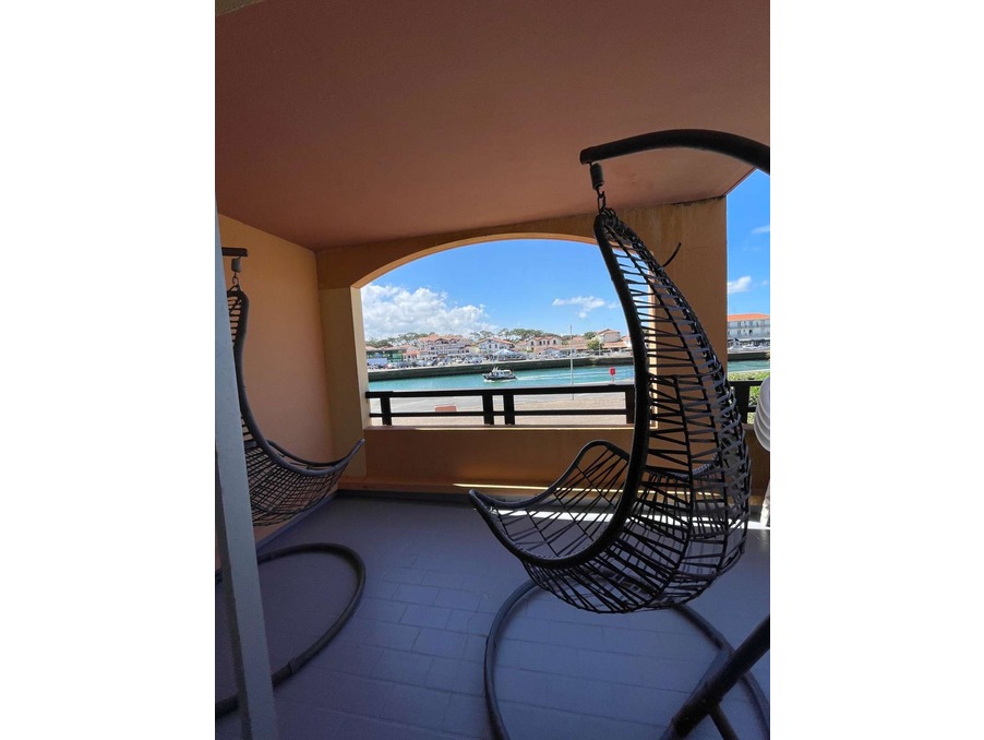 Jolie vue depuis la terrasse donnant sur le port et le canal de Capbreton