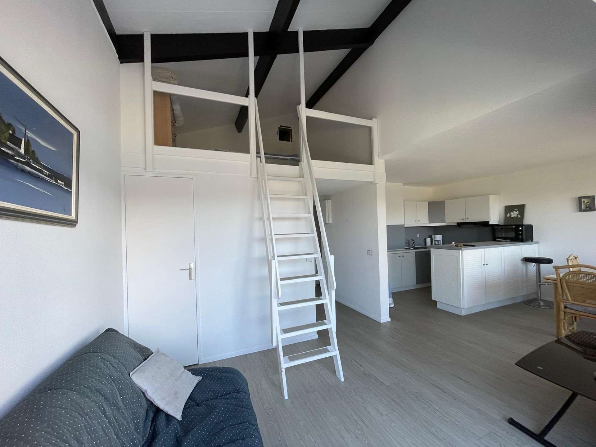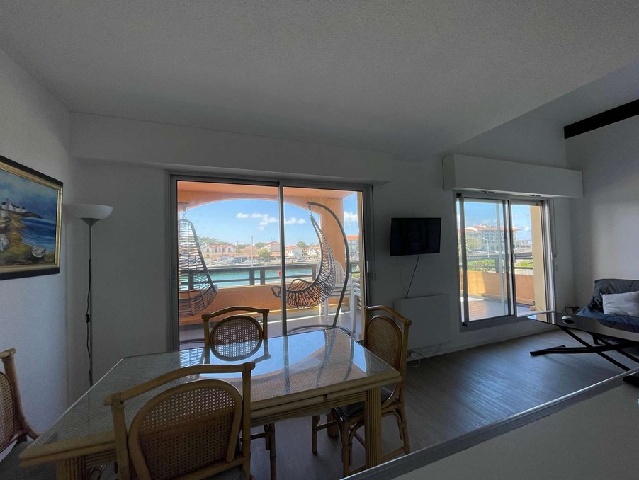 Spacieux T2 bis, situé au premier étage, entrée avec placard, chambre deux petits lits, mezzanine lit double, salle d'eau avec wc cuisine aménagé équipée et salon ouvrant sur une très grande terrasse orienté au sud. avec un accès a la piscine. Appartement très bien équipé Jolie vue sur le port et le canal. Le linge de maison et ménage ne sont pas inclus mais peut vous être proposé à la location au besoin. ( nous consulter) En période de froid un supplément vous sera demandé pour la participation au chauffage